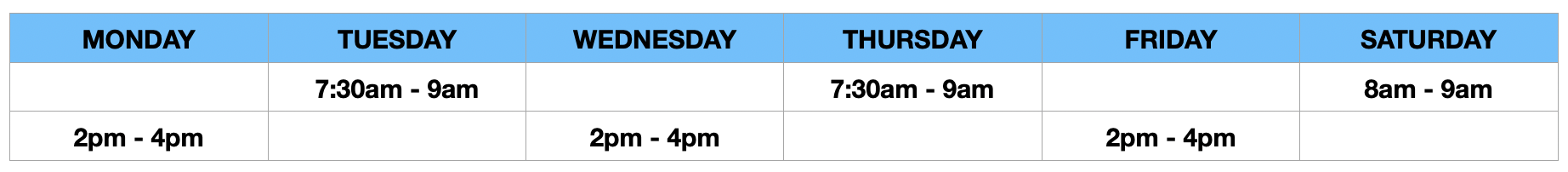 Open Studio Schedule
